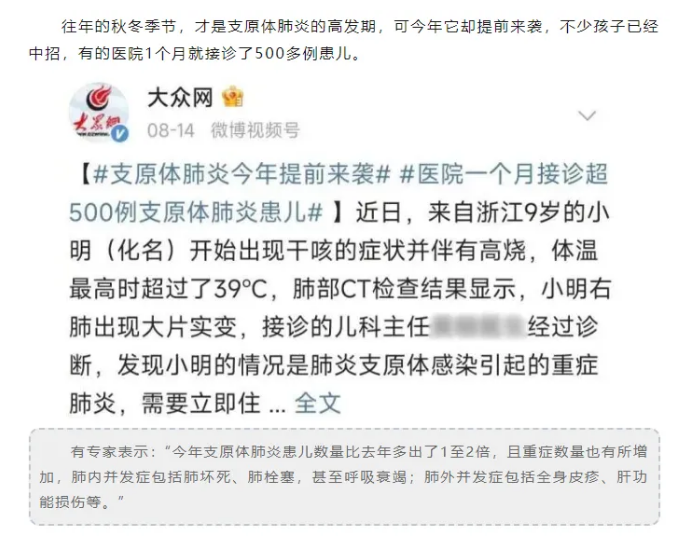 根據(jù)復(fù)旦兒科醫(yī)院數(shù)據(jù)顯示:近期兒童發(fā)熱主要集中在甲流、支原體等病原微生物感染。其中,甲流單日檢出達(dá)100多例,較9月1日前增長(zhǎng)了30%。周末就診高峰期,單日掛水人次可達(dá)900人。